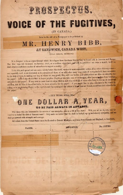 Under such conditions, the African American tradition of truth-telling was born. Long before Muhammad Speaks or Radio Free Dixie stoked the flame of justice for Black America— the writings and poetry of Henry Walton Bibb was our collective north star. During the time when the “dark and dismal frown of slavery had obscured the sunshine of freedom,” Henry Bibb was the “Voice of the Fugitive,” writing in the shadows of tyranny for those in search of refuge.