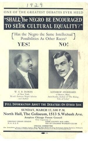 Side Note: In 1929, W.E.B Du Bois accepted a debate with Lothrop Stoddard. Although Du Bois won the debate, Stoddard’s ideas still gained popularity among the aggrieved white masses. The lesson here, debating extremists is an exercise in futility. Politically motivated ideologies are not responsive to facts.